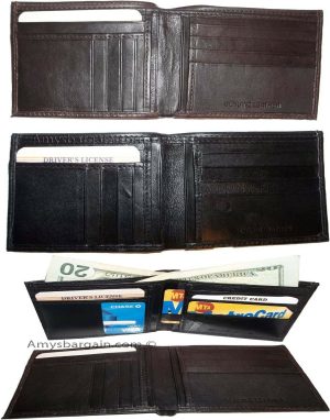 Lot of 2 New Men’s Soft Black/Brown Leather Bifold Wallet 9 Credit Card 2 ID BN.