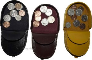 - Item: Leather change purse, Zip coin wallet.