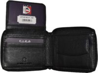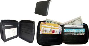 This zip around fine natural grain Fiza NY wallet is very stylish. It is well-made. It is made out of strong natural grain leather. This men’s wallet has a flip up ID window. This wallet would make a great gift item, or, treat yourselves to it.