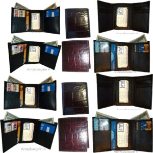 Lot of 4 Men’s Wallet Trifold wallet Billold FIZA NY Black Leather wallet in Box.Description:This Fiza NY soft natural grain leather trifold wallet is very stylish. It is well-made. It is made out of strong leather. This man’s wallet has 2 large bill folds. This trifold wallet would make a perfect gift item, or, treat yourselves to it.It has 9 card spaces and 2 billfold pockets.The branding is only on the box and packaging not on the actual wallet.Act now! it won’t last!Item Details: