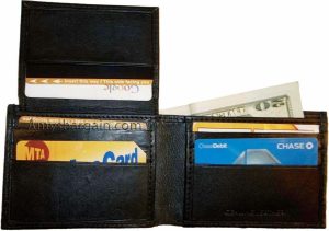 Description:Buy the lot and save a lot!This is a Trifold/Bifold wallet with bi fold features. It is another fine quality wallet; it is perfect for a gift for that special someone, or, just treat yourselves to it.This tri fold men’s wallet has a transparent window, 7 card spaces. a bill fold compartment. Not to mention, 3 secretly hidden card spaces.Item Details:· Item: New style leather men’s Trifold/Bifold wallet.· Material: Fine grain soft Leather.· 7 card spaces.· 1 Billfold compartment.· 1 transparent ID window.· 3 hidden under slot pockets.· Quality: Smooth top grain leather.· Dimensions: 4.50 x 3.25 inches.Re-order number: 5225.Manufacturers Suggested Retail Price (MSRP) $28.95 each.What’s included? leather wallet. Cards, Bills and other demo items are not included.Buy it now it won’t last!