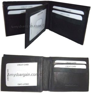 Description:This man’s wallet offers, 2 built-in center pieces for extra space, 3 ID windows for convenience, 9 card slots and more…This fine quality wallet would make a perfect gift for your special someone, or, treat yourselves to its quality and sleekness.Fact: Suede or leather lined wallets last twice as long as fabric lined wallet.This wallet is suede lined.Act now!Item Details: