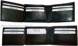 Description:This soft genuine leather Bi-fold men’s wallet offers 6 credit card spaces. 2 billfold pockets, a 3rd zip billfold for bills or coins and a transparent ID windows. It would make a great gift item, or treat yourselves to it.Fact: leather or suede leather lined wallets last twice as long as fabric lined wallets.This wallet is suede leather lined.Buy it now! It will not last at this price!Item Details:· Item: Men’s Bifold leather Wallet.· Material: genuine leather.· 2 Billfold pockets.· 3rd zip bill fold for bills or coins.· 1 Built-in zip coin pocket.· 2 Transparent ID windows.· 6 Credit card spaces.· 3 Under-card hidden card spaces.· Closure: secure snap on Velcro closure.· Dimensions: (Closed): 4.40 x 3.40 inches.· Color: Natural tan. View images please.·What’s included? leather wallet. Bills, cards and other “Demo Items” are not included.Re-order number: Y52BY30.Manufacturers Suggested Retail Price (MSRP) $29.95 each.Buy it now it won’t last!