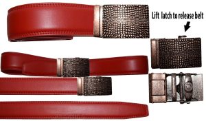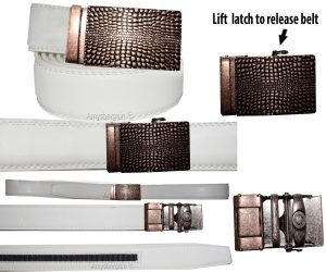 Description:This is a new arrival men’s leather dress belt. It is very dressy and it has a very attractively chrome metallic bronze buckle.It is a genuine cowhide leather belt. This 100% cowhide leather belt with the clip-on buckle is perfect for your belt buckle interchanging needs. It allows you to clip-on your own 1.50 inch buckle easily.This new arrival dressy leather dress belt is perfect to wear with dressy attire, when attending business meetings, or formal parties.Act now! It won’t last at this price.Item Details: