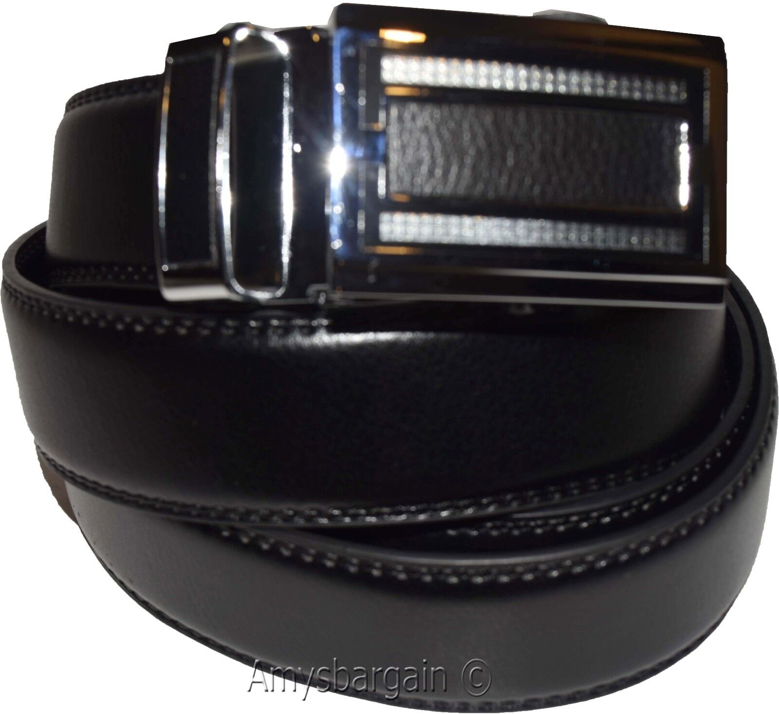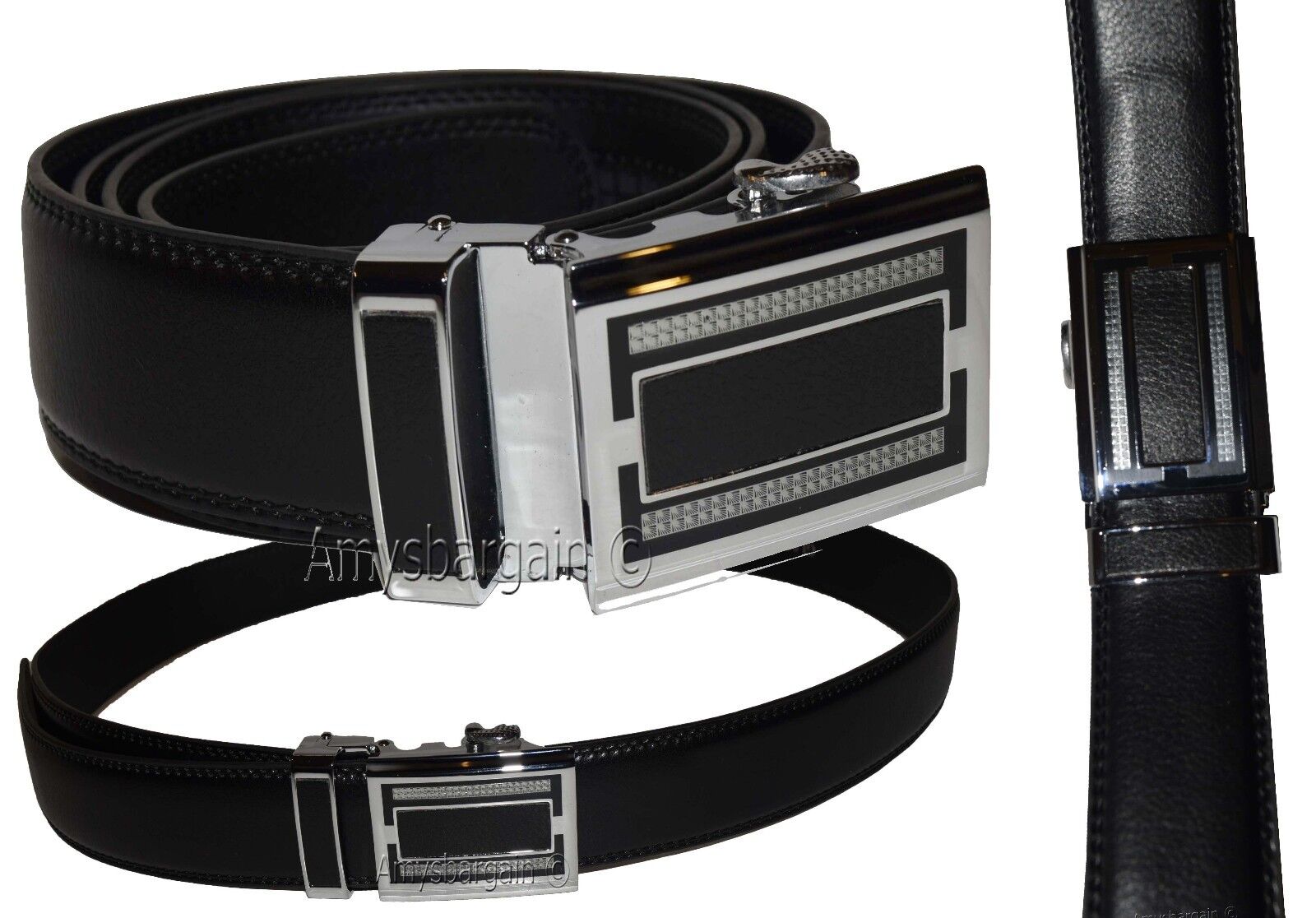 Quick-lock Men's leather dress belt (L) Casual belt. Automatic fit leather belt